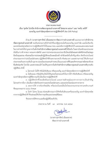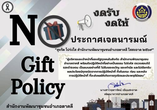 สำนักงานพัฒนาชุมชนอำเภอตาคลี นำโดย นางสาวจุฑารัตน์ เอี่ยมสอาด พัฒนาการอำเภอตาคลี และเจ้าหน้าที่พัฒนาชุมชนอำเภอตาคลี งดรับ งดให้ ของขวัญและของกำนัล ทุกชนิดจากการปฏิบัติหน้าที่ (No Gift Policy) ในขณะ ก่อน และ หลัง การปฏิบัติหน้าที่